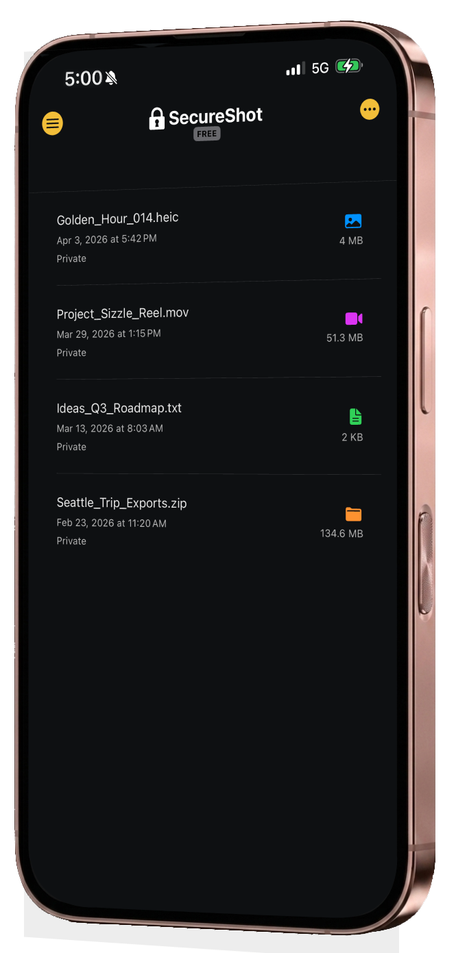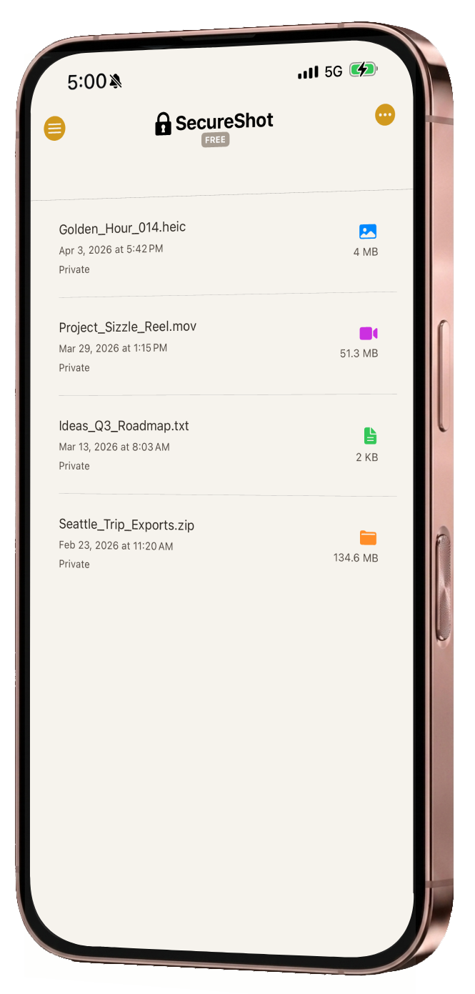 SecureShot turns photos and videos into portable .sshot files — encrypted on your device before upload, protected per file, and designed so the cloud holds ciphertext and sync-safe listing data, not plaintext media or decryption secrets.
